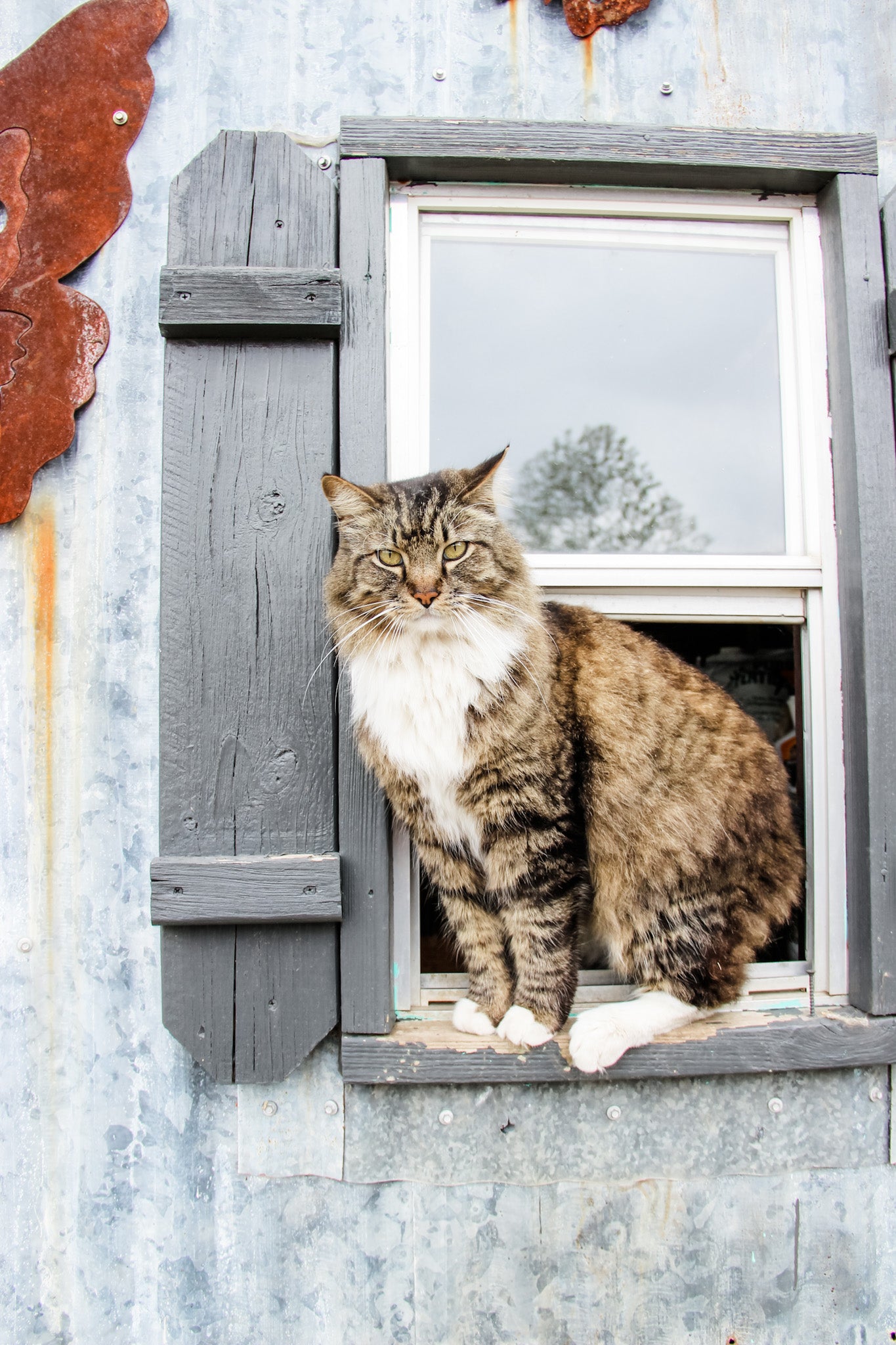 We converted that old coop into our very first candle pouring studio a few years back. We’ve since outgrown it, but it’ll always be a special place to us! The iron butterflies have been on the house for fifteen years and they remind us to keep our thoughts on the higher things in life. You might notice the cat in front of the house, our old friend Barney who keeps us company while we work.